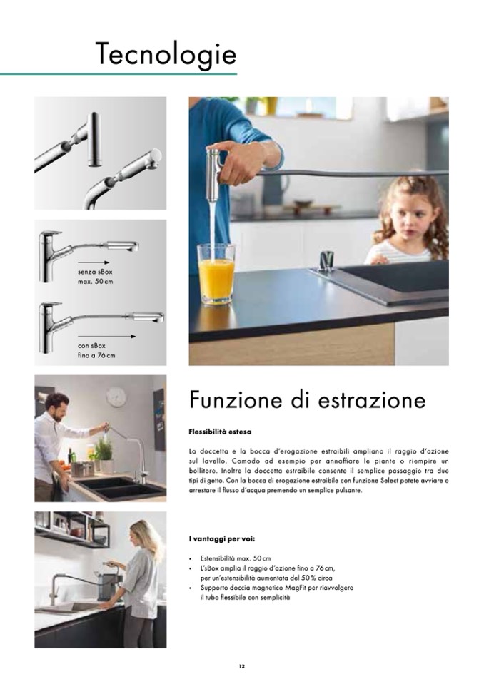 tipi di getto. Con la bocca di erogazione estraibile con funzione Select potete avviare o