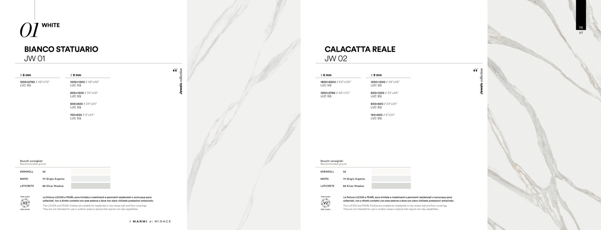 finiture LUCIDA e PEARL sono limitate a rivestimenti e pavimenti residenziali o comunque poco