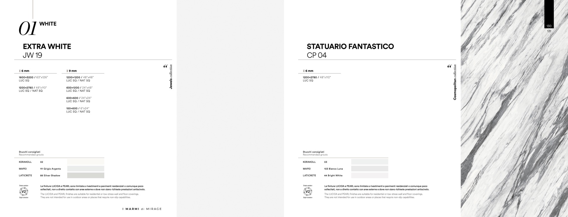 finiture LUCIDA e PEARL sono limitate a rivestimenti e pavimenti residenziali o comunque poco