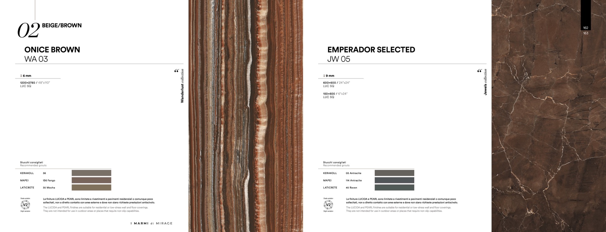 finiture LUCIDA e PEARL sono limitate a rivestimenti e pavimenti residenziali o comunque poco