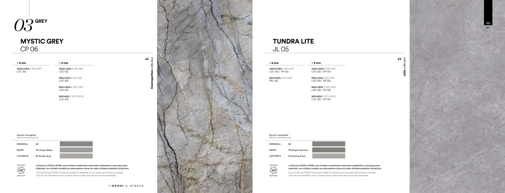 finiture LUCIDA e PEARL sono limitate a rivestimenti e pavimenti residenziali o comunque poco