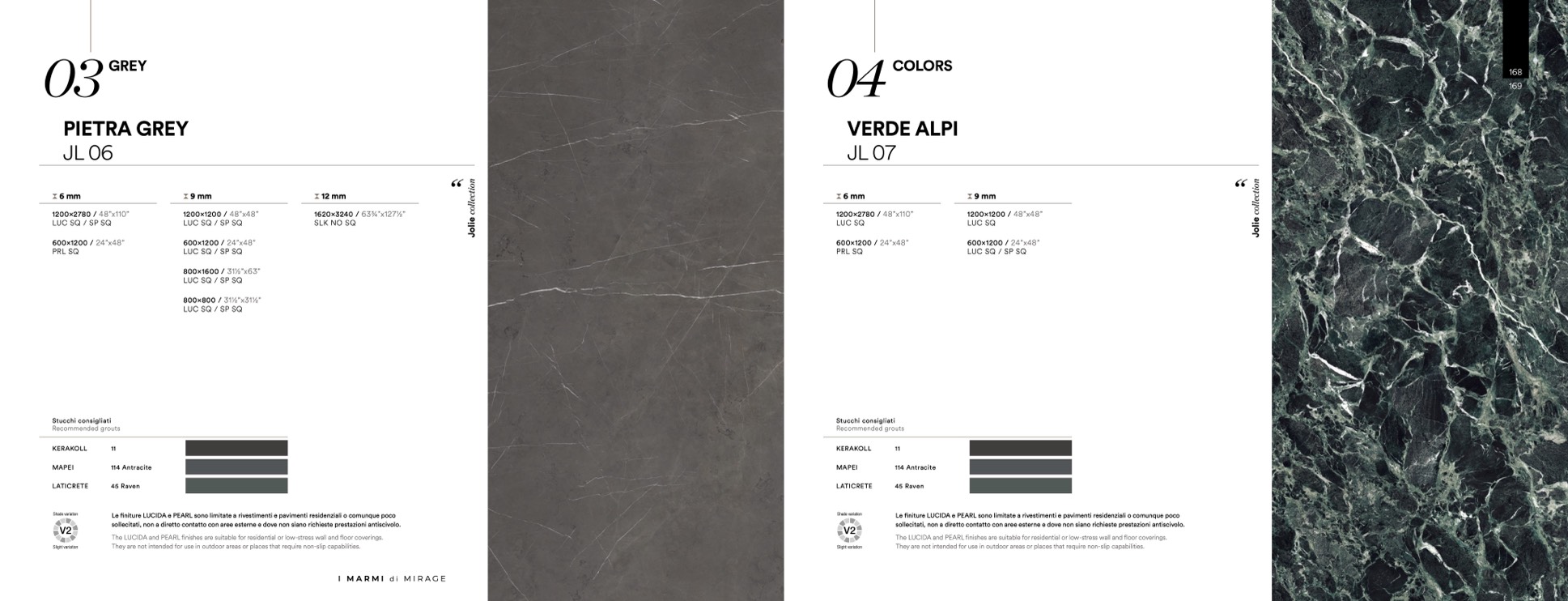 The LUCIDA and PEARL finishes are suitable for residential or low-stress wall and floor coverings.