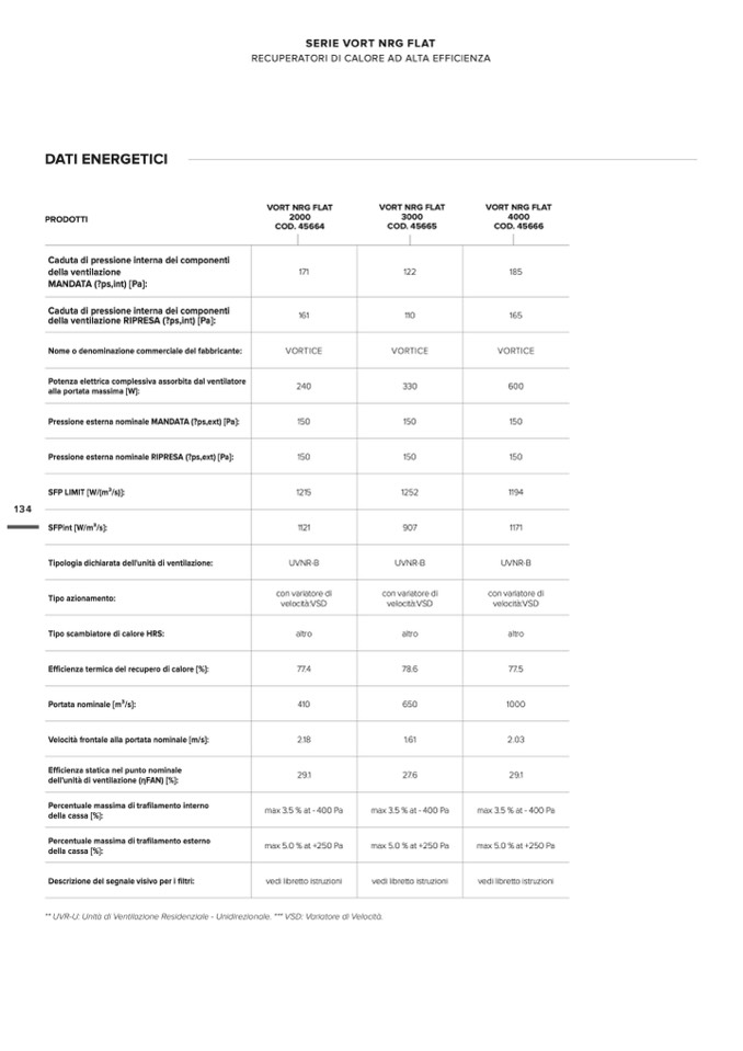 ** UVR-U: Unità di Ventilazione Residenziale - Unidirezionale. *** VSD: Variatore di Velocità.