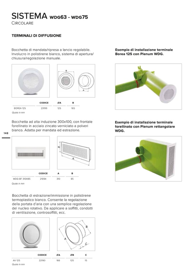 Bocchetta di mandata/ripresa a lancio regolabile.