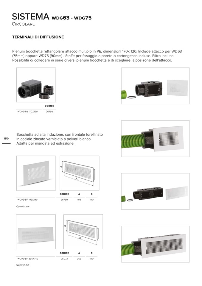 (75mm) oppure WD75 (90mm) . Staffe per fissaggio a parete o cartongesso incluse. Filtro incluso.
