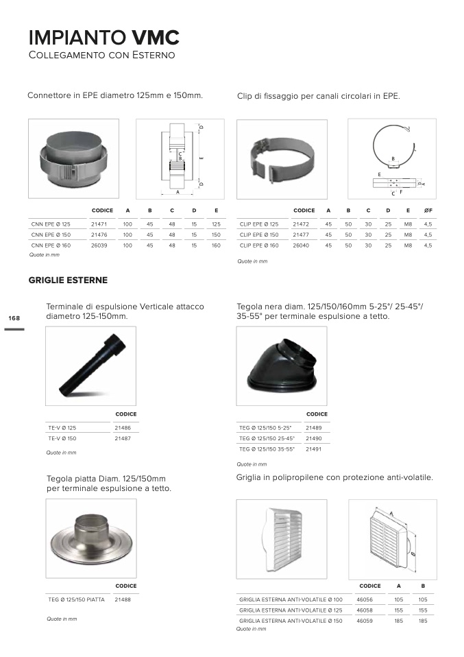 GRIGLIA ESTERNA ANTI-VOLATILE Ø 125