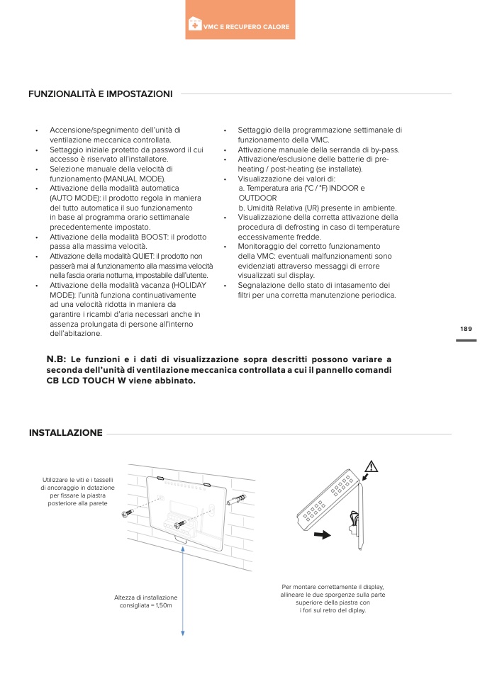 seconda dell’unità di ventilazione meccanica controllata a cui il pannello comandi