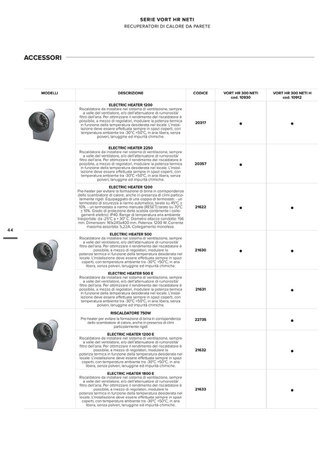 gamenti elettrici: IP40. Range di temperatura aria ambiente