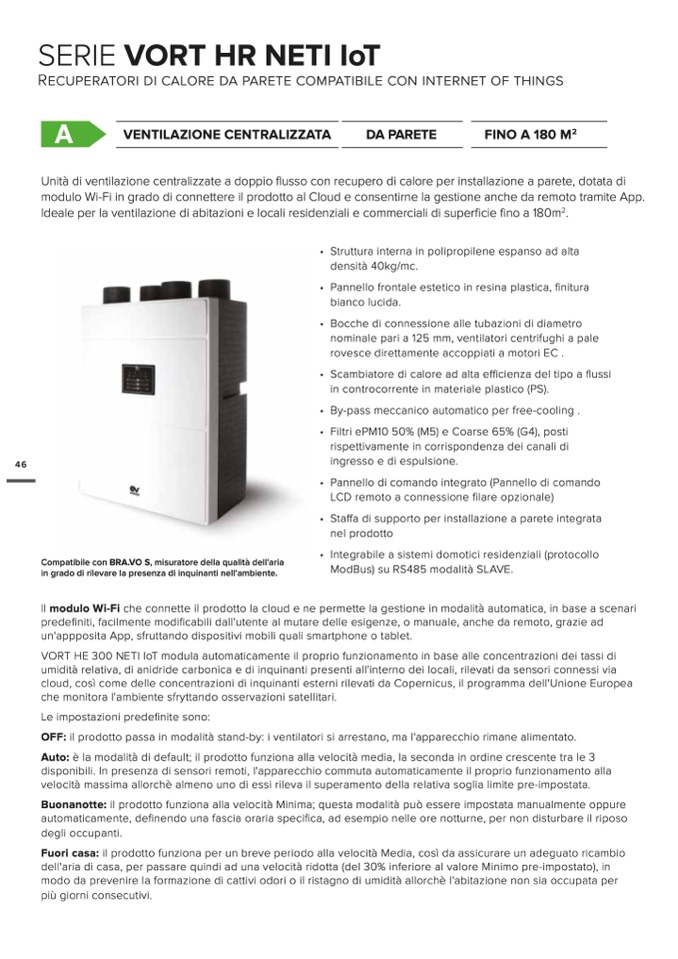 VORT HE 300 NETI IoT modula automaticamente il proprio funzionamento in base alle concentrazioni dei tassi di