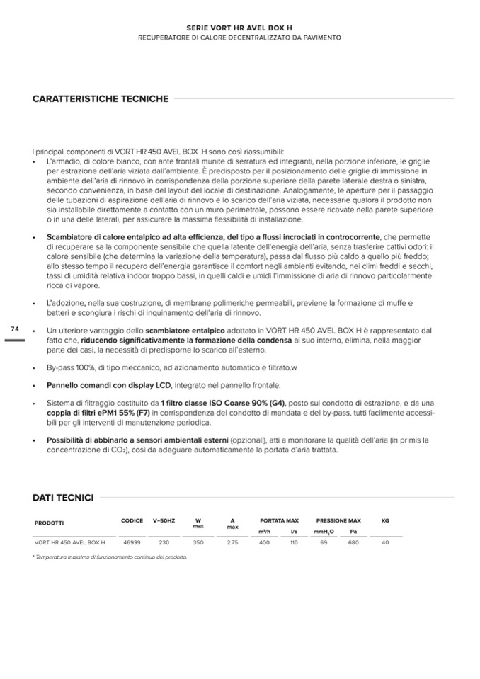 • Un ulteriore vantaggio dello scambiatore entalpico adottato in VORT HR 450 AVEL BOX H è rappresentato dal