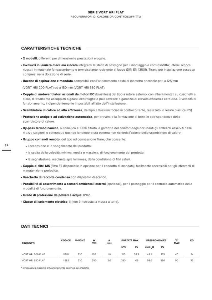(VORT HRI 200 FLAT) ed a 150 mm (VORT HRI 350 FLAT).