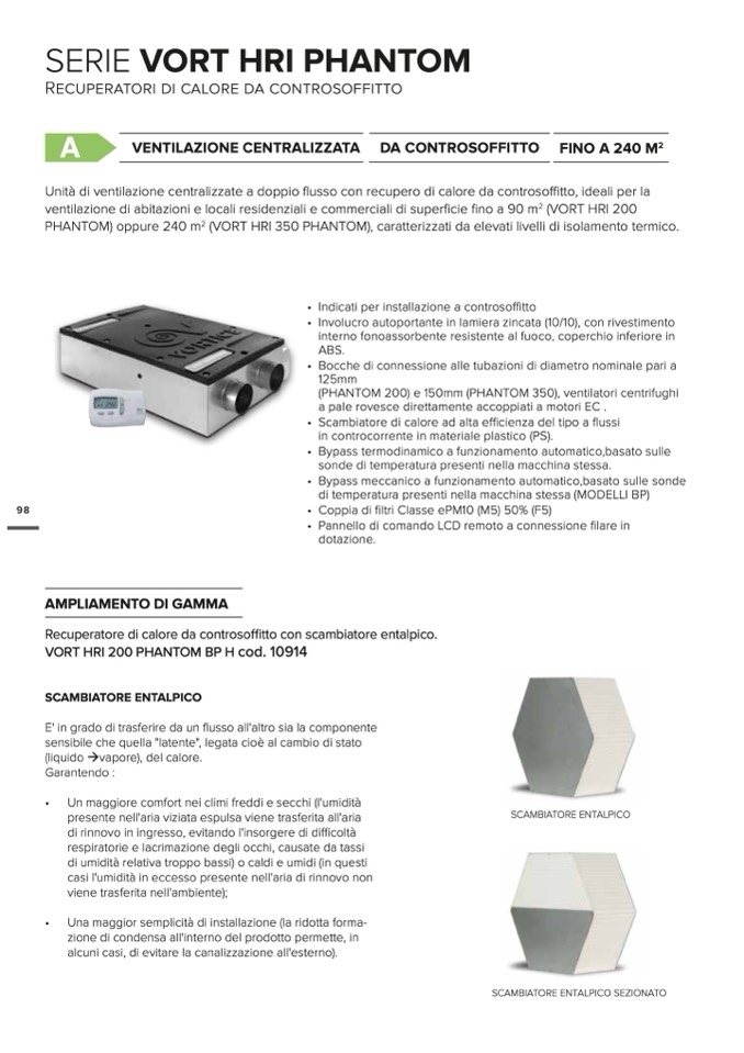 (VORT HRI 350 PHANTOM), caratterizzati da elevati livelli di isolamento termico.