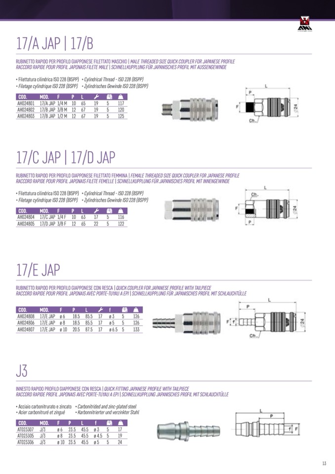 RUBINETTO RAPIDO PER PROFILO GIAPPONESE FILETTATO MASCHIO | MALE THREADED SIZE QUICK COUPLER FOR JAPANESE PROFILE