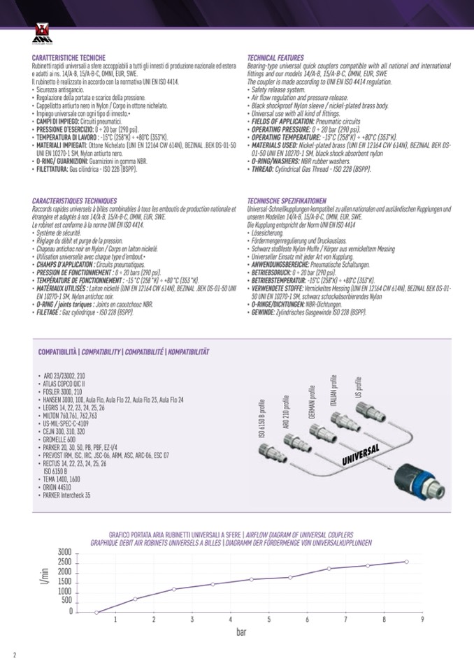 Rubinetti rapidi universali a sfere accoppiabili a tutti gli innesti di produzione nazionale ed estera