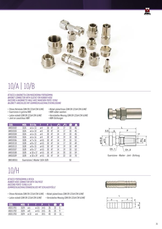• Nickel-plated brass (UNI EN 12164 CW 614N)