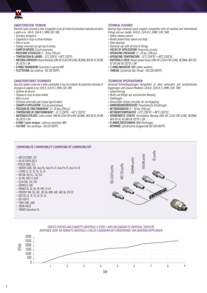 Rubinetti rapidi universali a sfere accoppiabili a tutti gli innesti di produzione nazionale ed estera