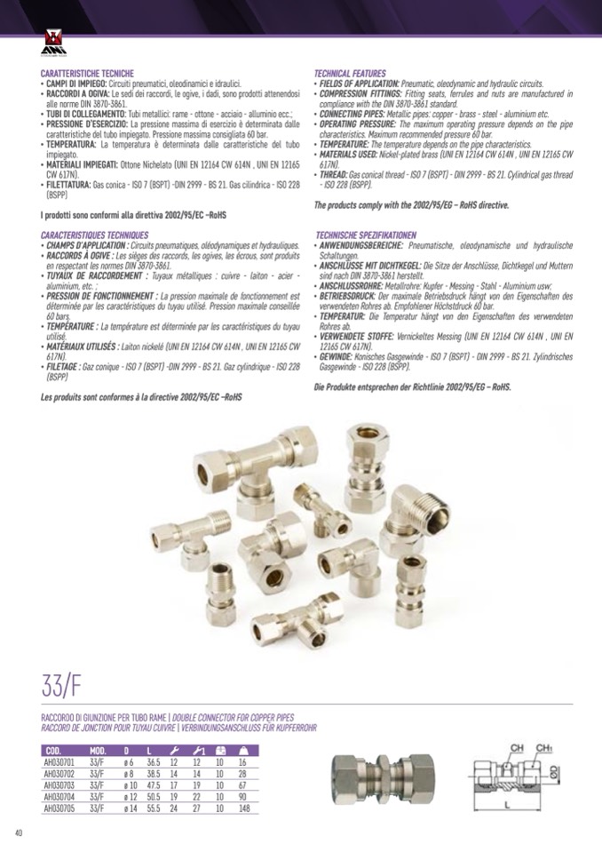 • CAMPI DI IMPIEGO: Circuiti pneumatici, oleodinamici e idraulici.
