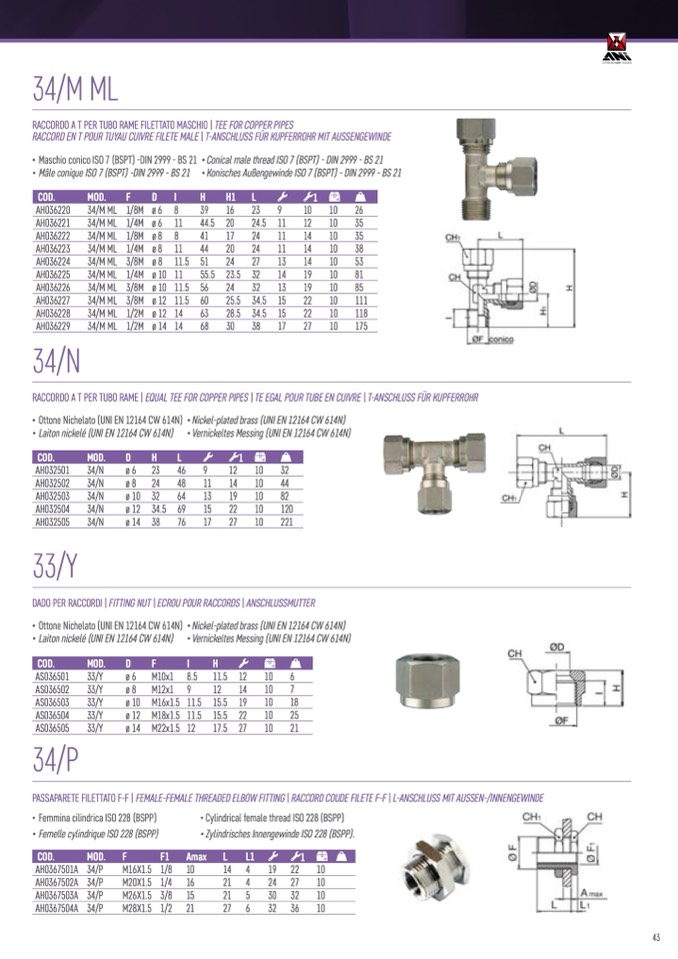 DADO PER RACCORDI | FITTING NUT | ECROU POUR RACCORDS | ANSCHLUSSMUTTER