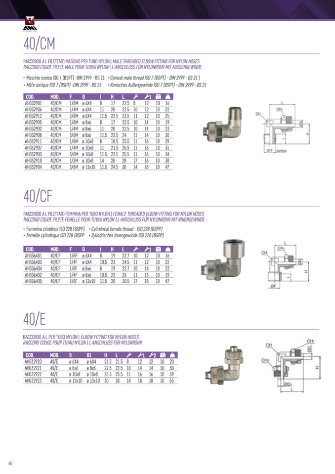 RACCORDO A L PER TUBO NYLON | ELBOW FITTING FOR NYLON HOSES