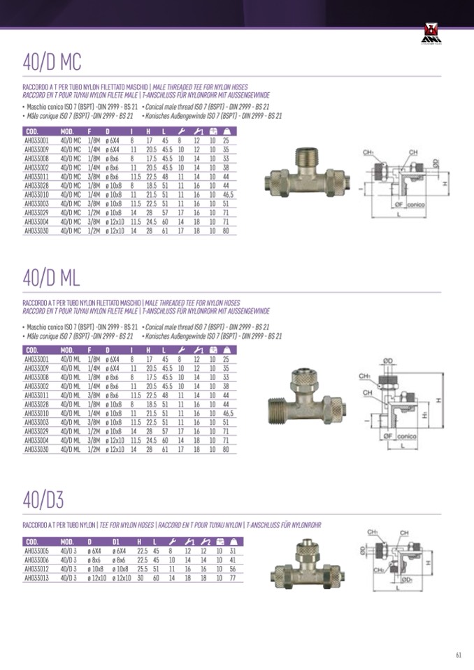 RACCORDO A T PER TUBO NYLON | TEE FOR NYLON HOSES | RACCORD EN T POUR TUYAU NYLON | T-ANSCHLUSS FÜR NYLONROHR
