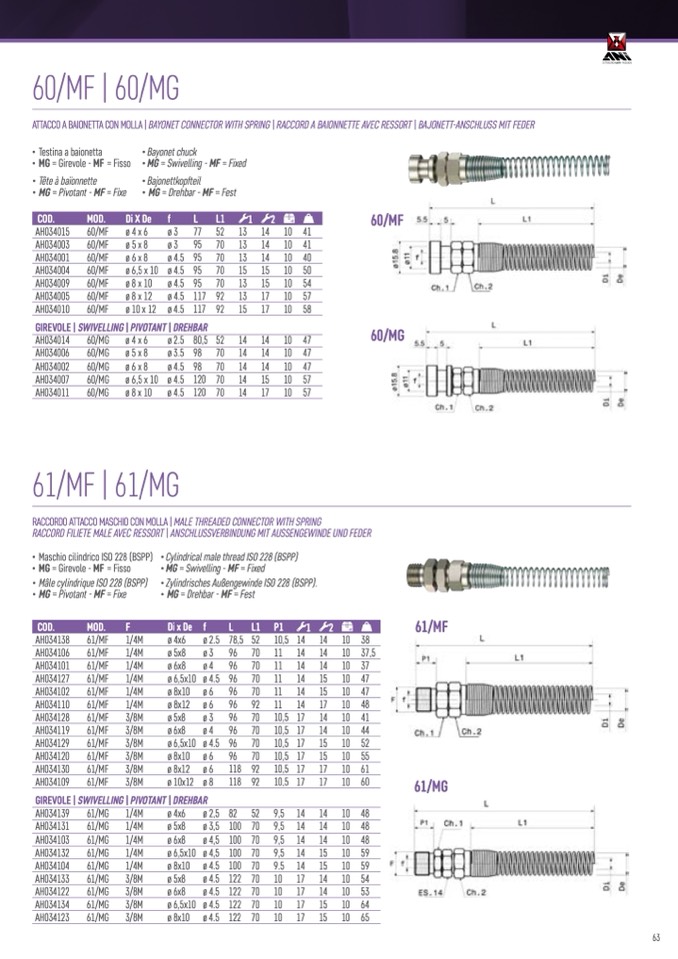 RACCORDO ATTACCO MASCHIO CON MOLLA | MALE THREADED CONNECTOR WITH SPRING