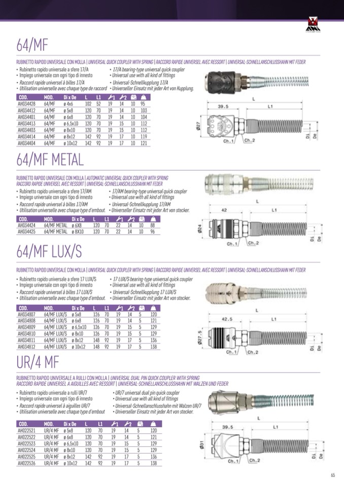 RUBINETTO RAPIDO UNIVERSALE CON MOLLA | UNIVERSAL QUICK COUPLER WITH SPRING | RACCORD RAPIDE UNIVERSEL AVEC RESSORT | UNIVERSAL-SCHNELLANSCHLUSSHAHN MIT FEDER