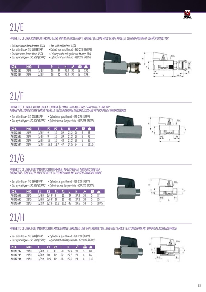ROBINET DE LIGNE FILETE MALE FEMELLE | LEITUNGSHAHN MIT AUSSEN-/INNENGEWINDE