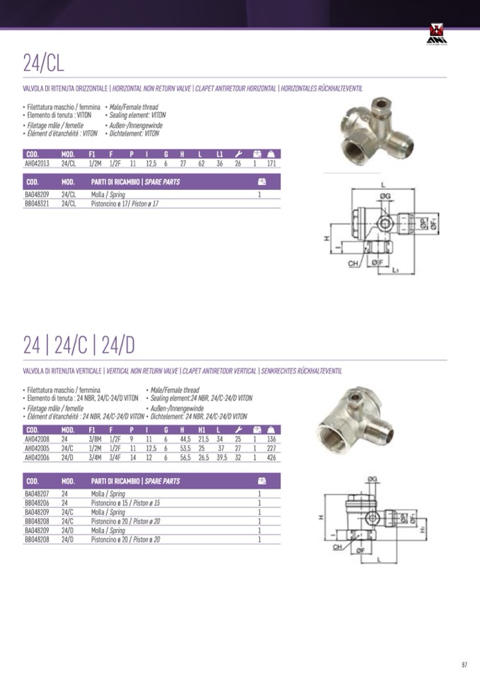 • Elemento di tenuta : 24 NBR, 24/C-24/D VITON