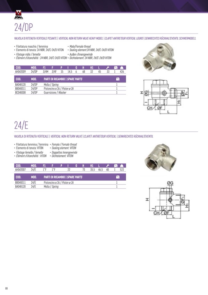VALVOLA DI RITENUTA VERTICALE | VERTICAL NON RETURN VALVE | CLAPET ANTIRETOUR VERTICAL | SENKRECHTES RÜCKHALTEVENTIL