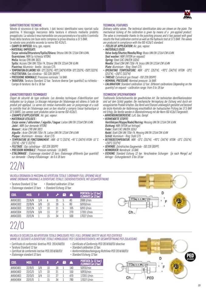 Needle: Steel CB4 UNI 7356-74, brass UNI EN 12164 CW 614N