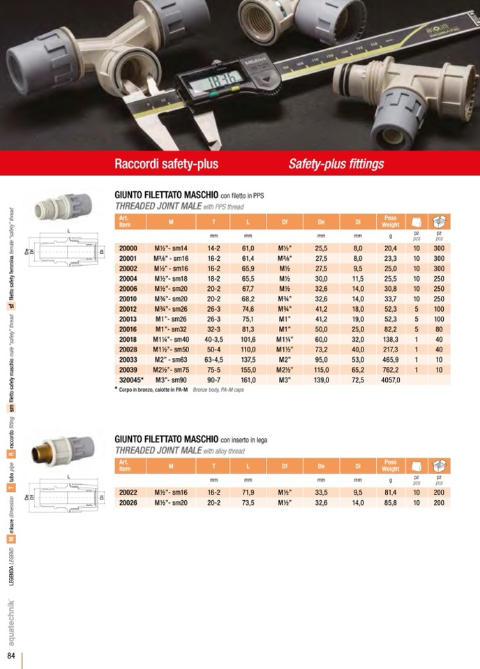* Corpo in bronzo, calotte in PA-M Bronze body, PA-M caps