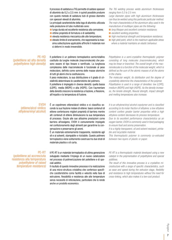 manufacture of multilayer pipes are the following: