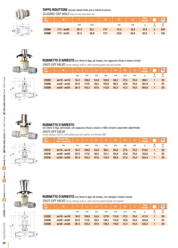 screw closing, built-in, with plated cap and washer of chromed ABS