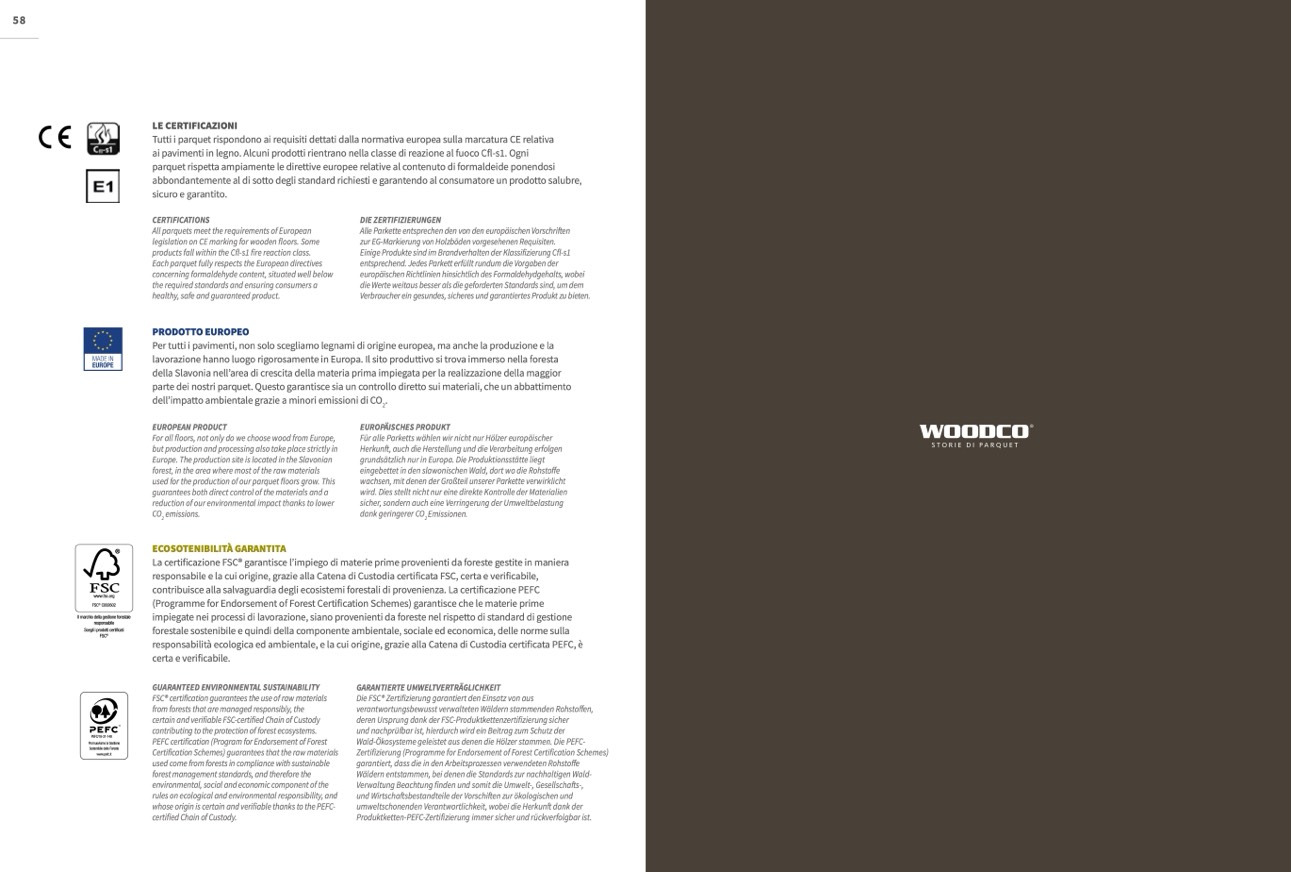 Tutti i parquet rispondono ai requisiti dettati dalla normativa europea sulla marcatura CE relativa