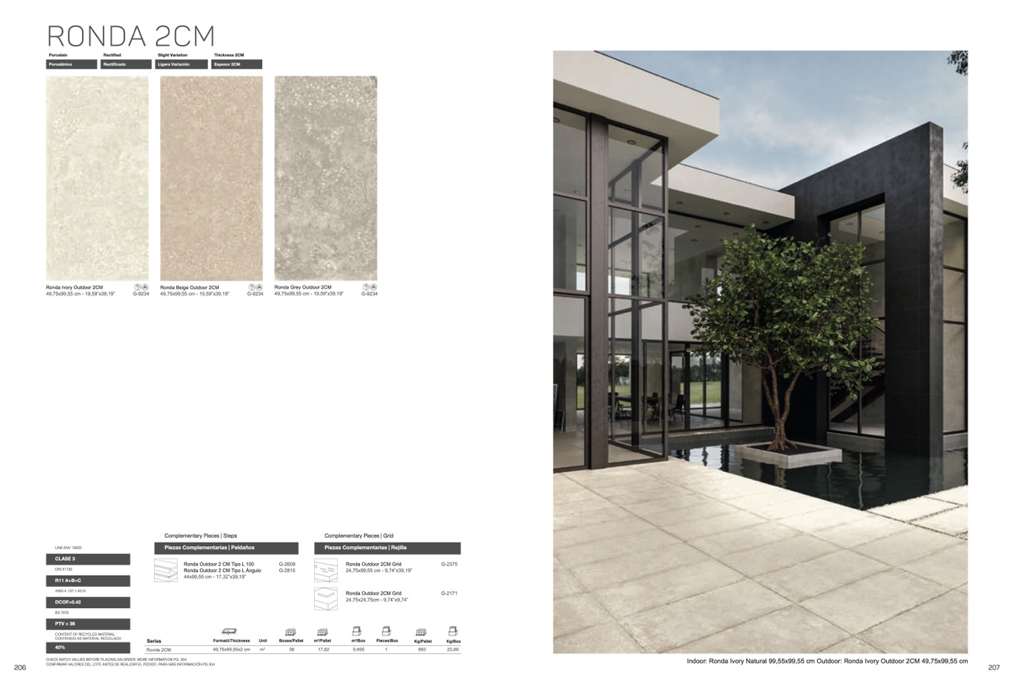 Indoor: Ronda Ivory Natural 99,55x99,55 cm Outdoor: Ronda Ivory Outdoor 2CM 49,75x99,55 cm