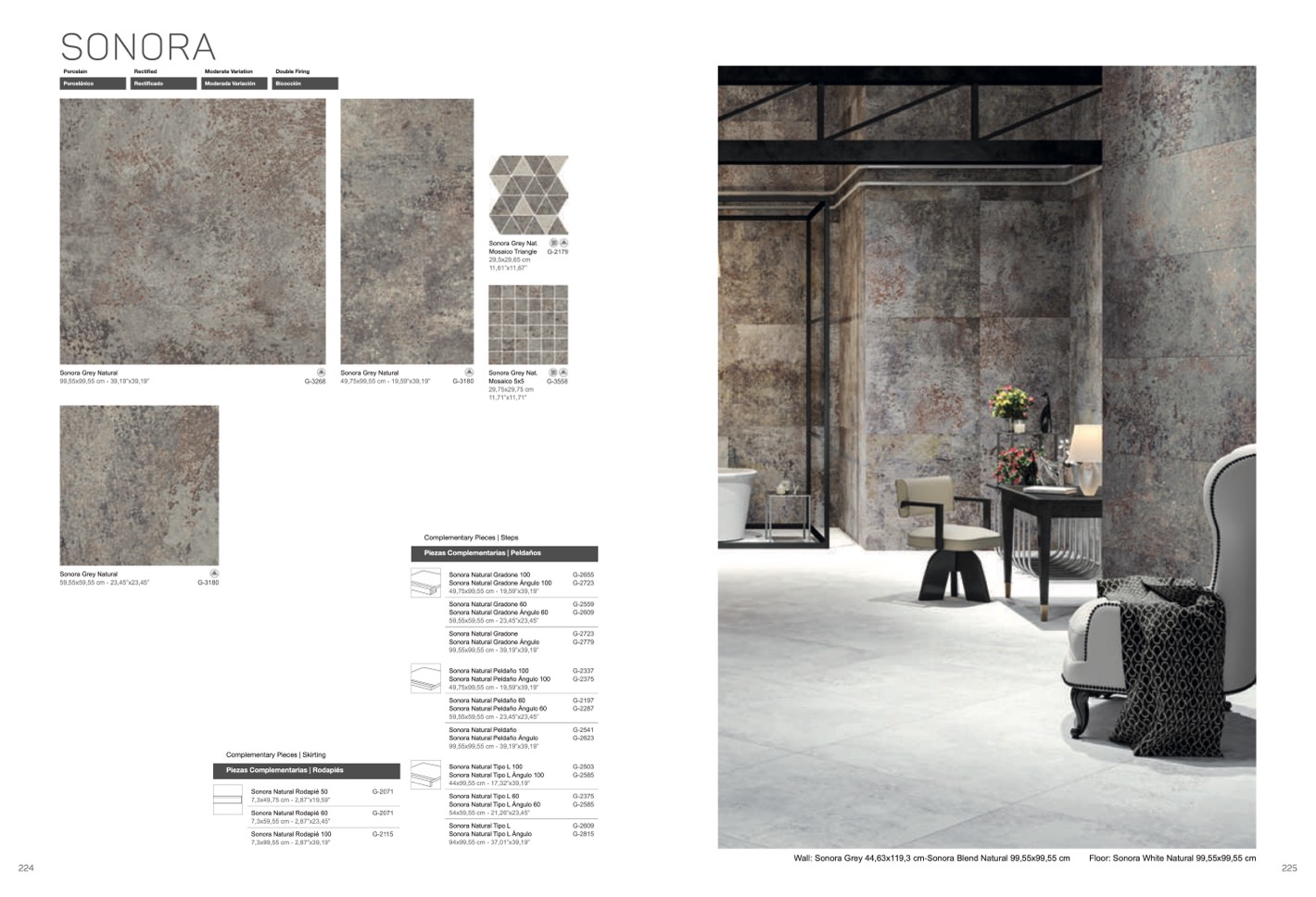 Wall: Sonora Grey 44,63x119,3 cm-Sonora Blend Natural 99,55x99,55 cm