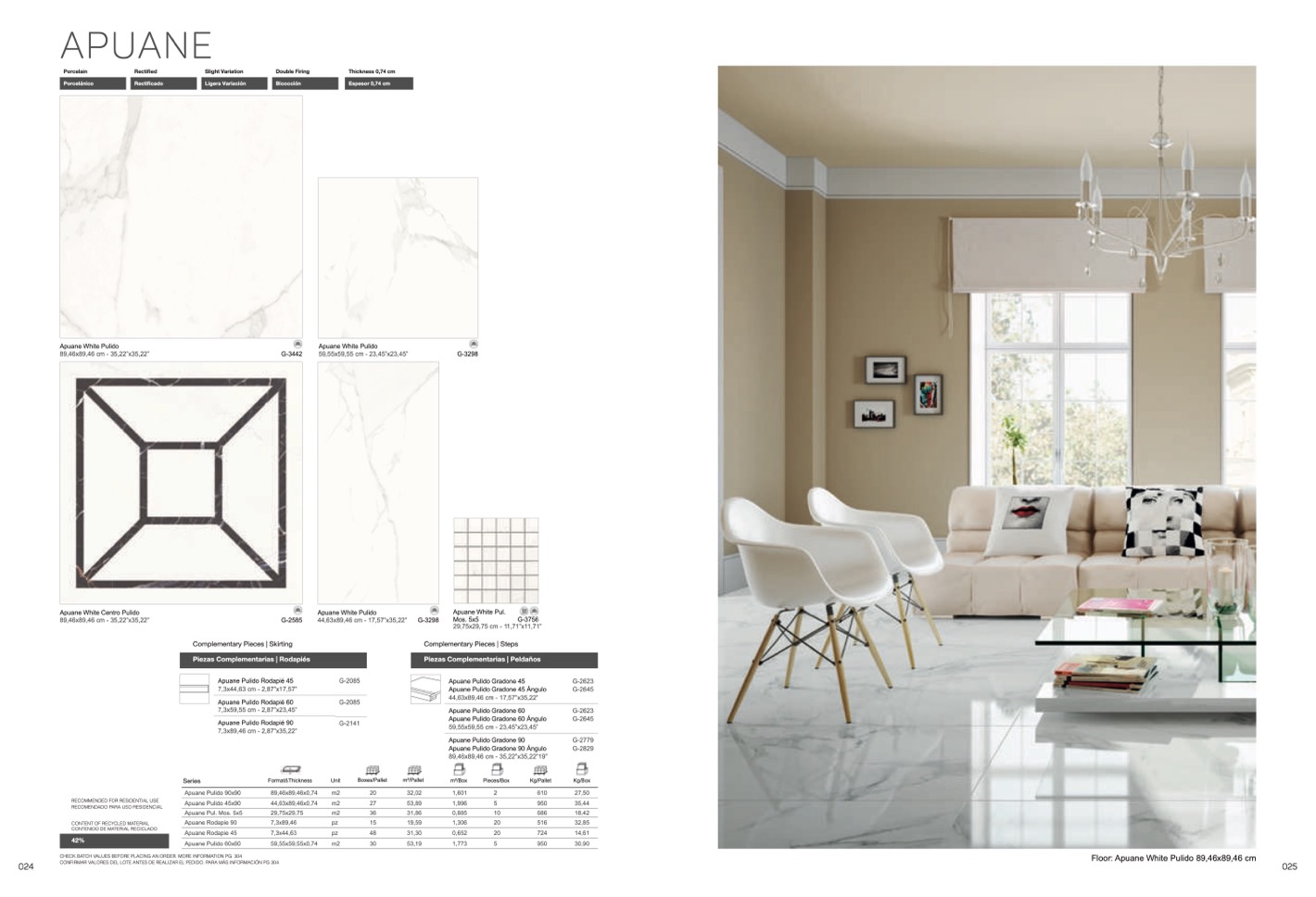 Floor: Apuane White Pulido 89,46x89,46 cm