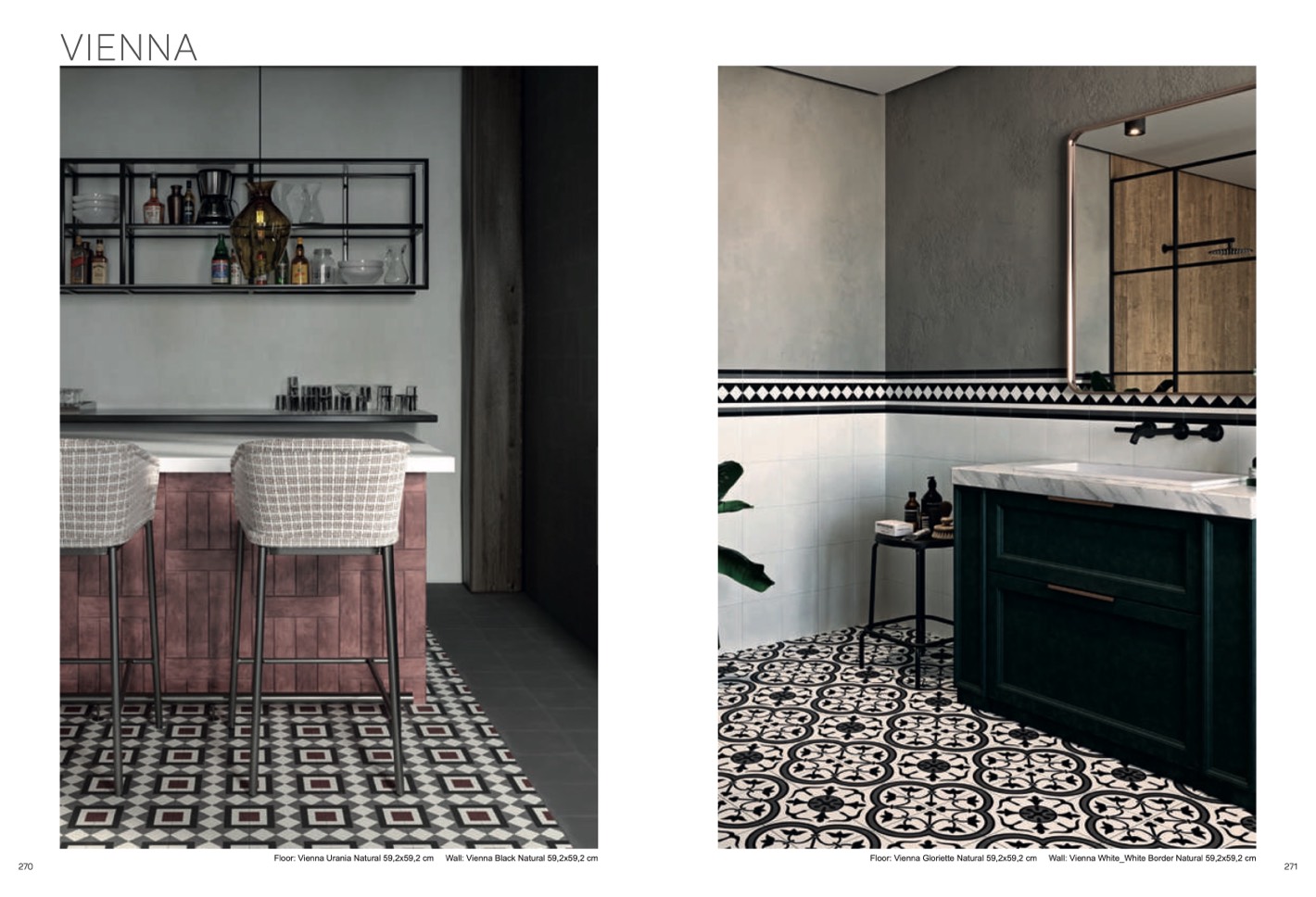 Floor: Vienna Urania Natural 59,2x59,2 cm Wall: Vienna Black Natural 59,2x59,2 cm