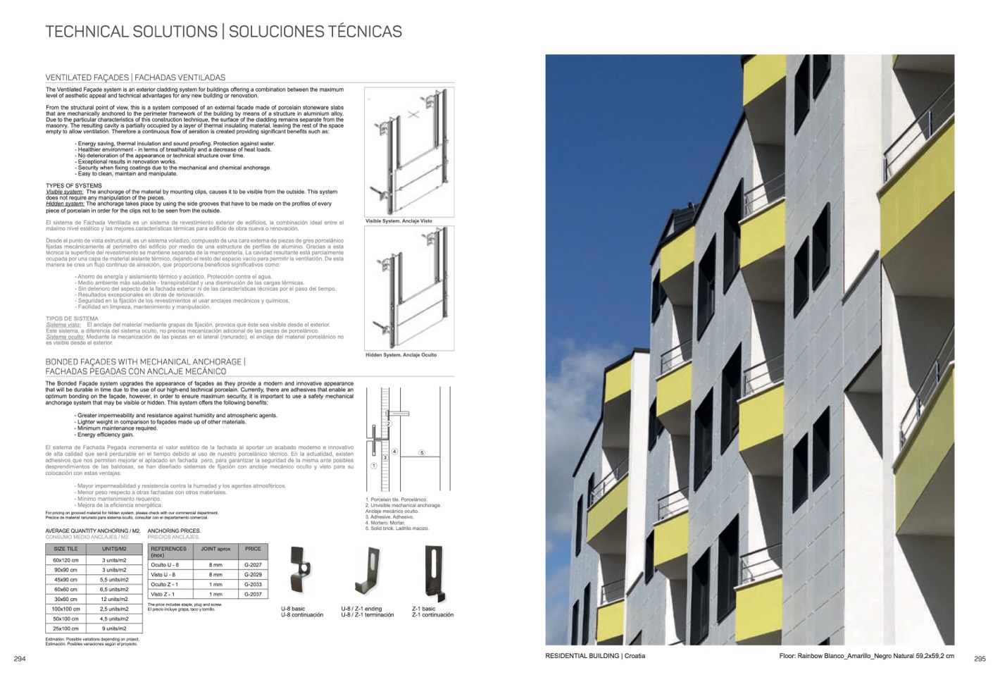 desprendimientos de las baldosas, se han diseñado sistemas de fijación con anclaje mecánico oculto y visto para su