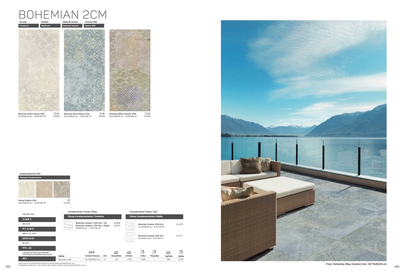 Floor: Bohemian Blue Outdoor 2cm. 49,75x99,55 cm
