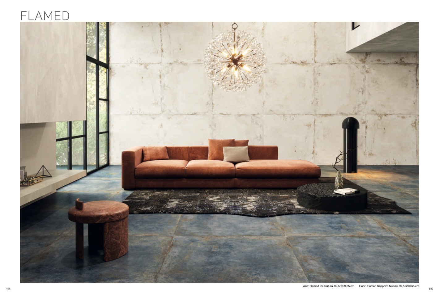 Wall: Flamed Ice Natural 99,55x99,55 cm Floor: Flamed Sapphire Natural 99,55x99,55 cm