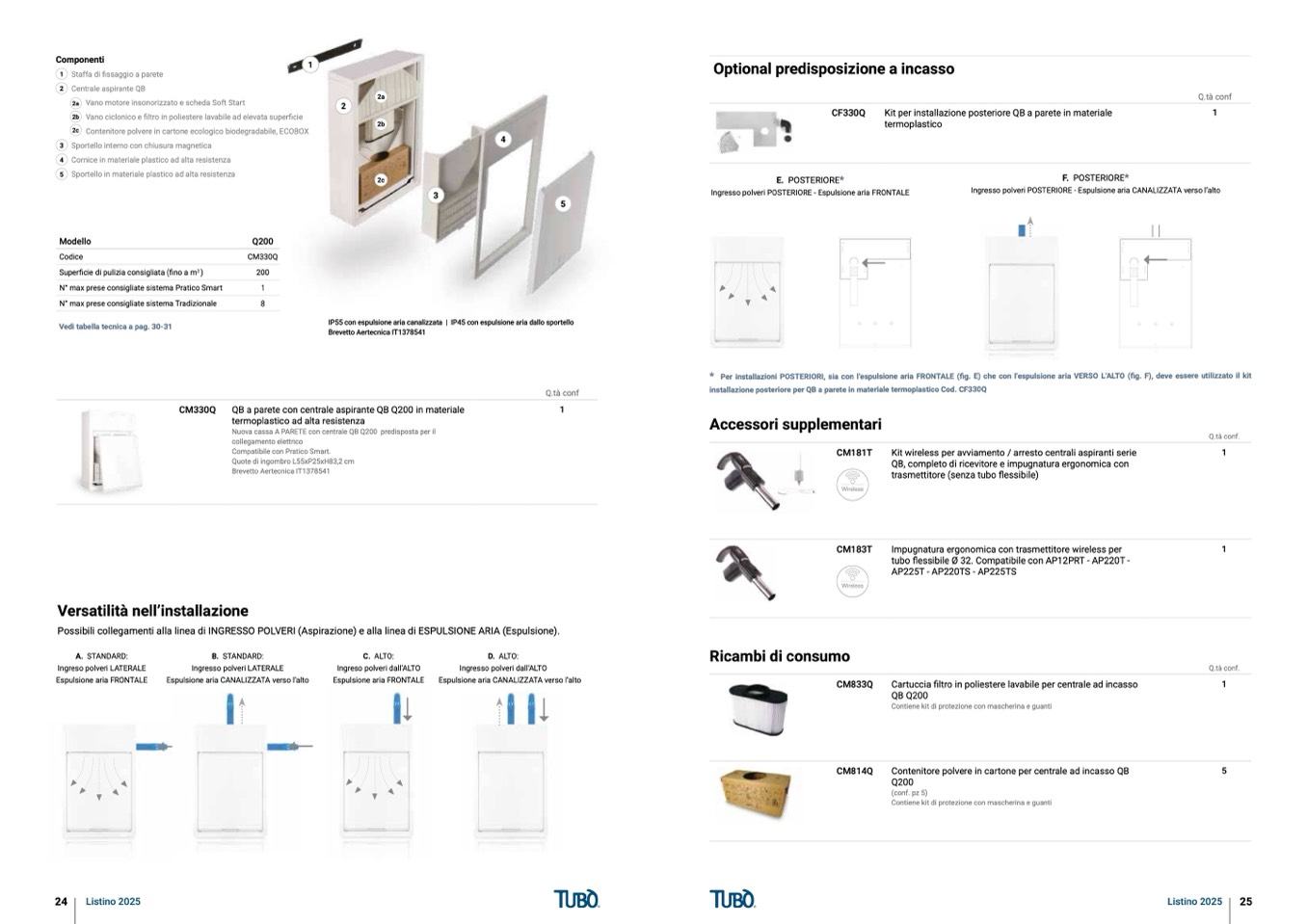 QB a parete con centrale aspirante QB Q200 in materiale