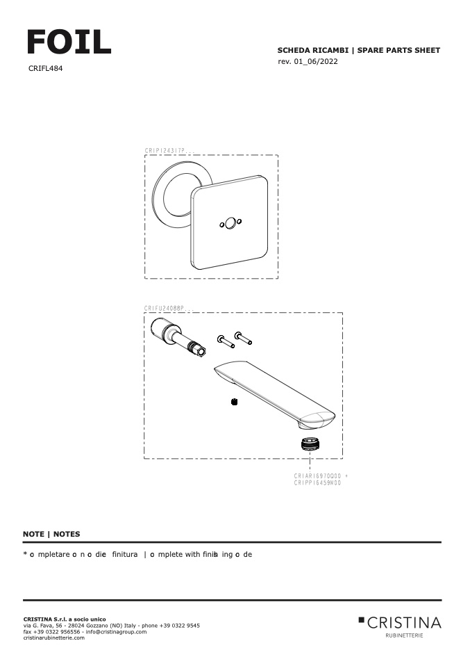 SCHEDA RICAMBI | SPARE PARTS SHEET