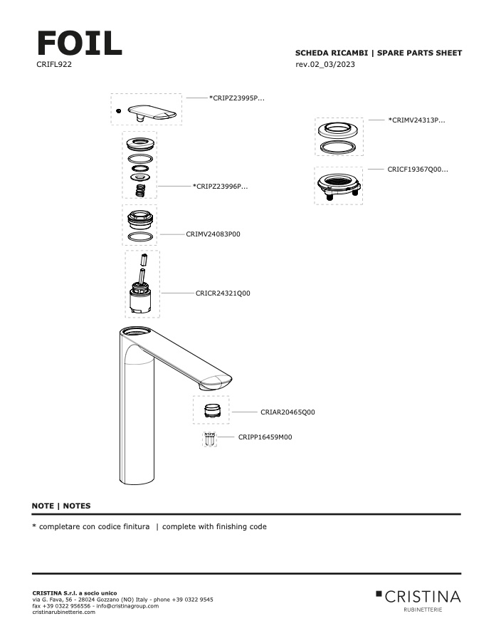 SCHEDA RICAMBI | SPARE PARTS SHEET
