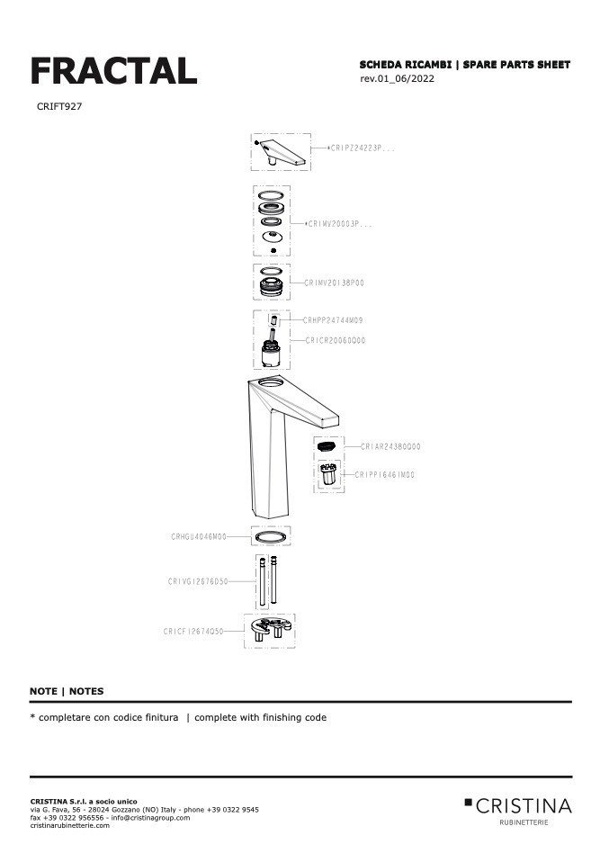SCHEDA RICAMBI | SPARE PARTS SHEET