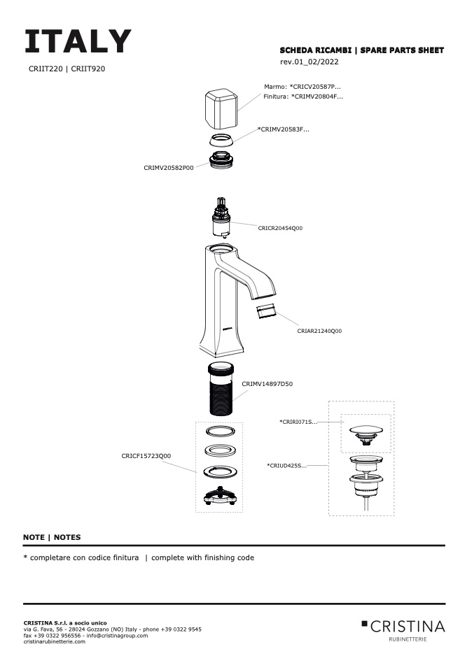 SCHEDA RICAMBI | SPARE PARTS SHEET
