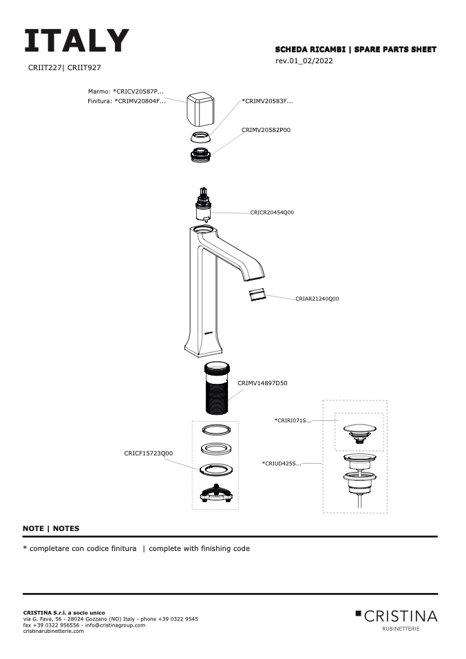 SCHEDA RICAMBI | SPARE PARTS SHEET