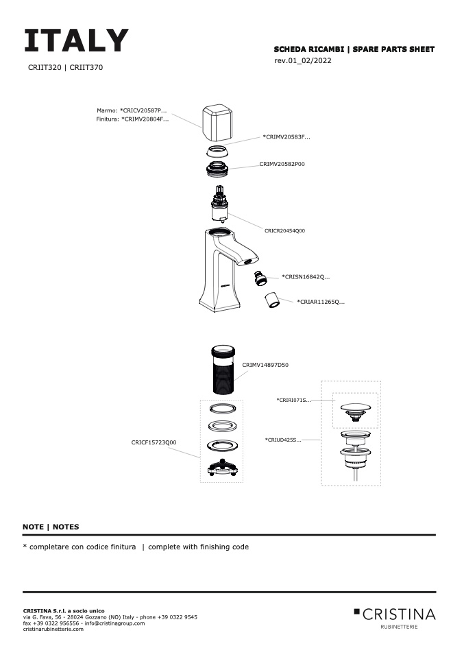 SCHEDA RICAMBI | SPARE PARTS SHEET