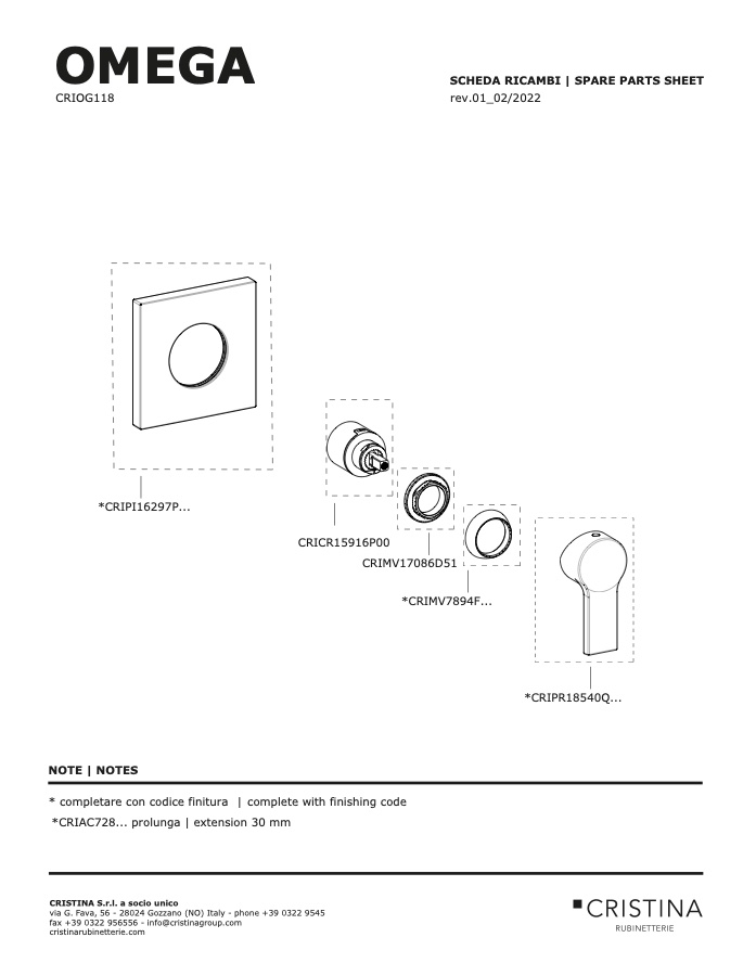 *CRIAC728... prolunga | extension 30 mm