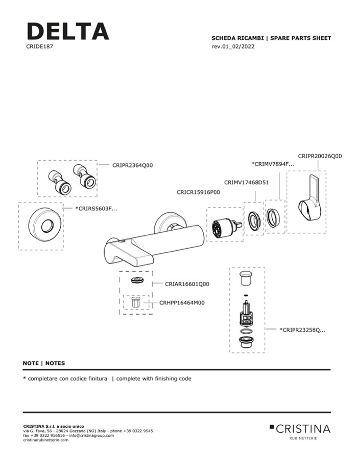 SCHEDA RICAMBI | SPARE PARTS SHEET